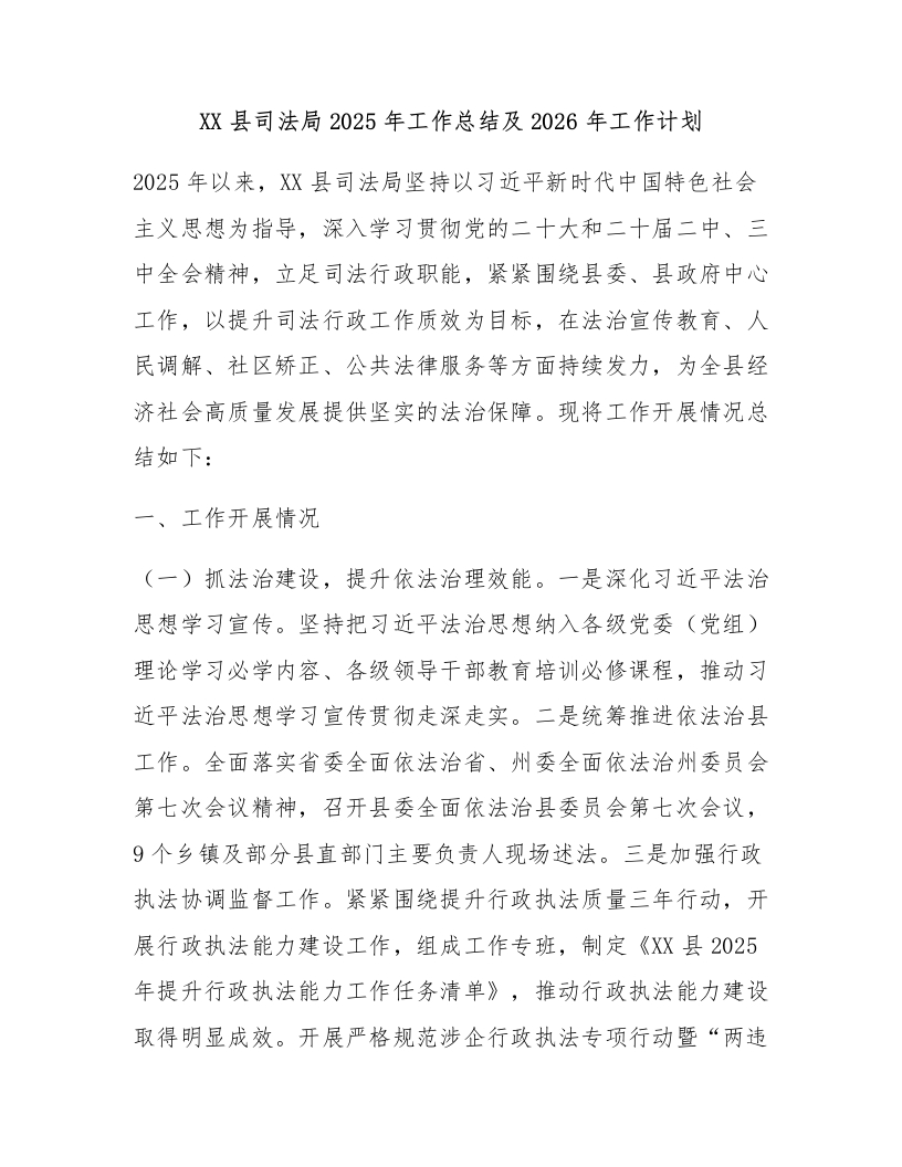 首页报告总结计划方案XX县司法局2025年工作总结及2026年工作计划