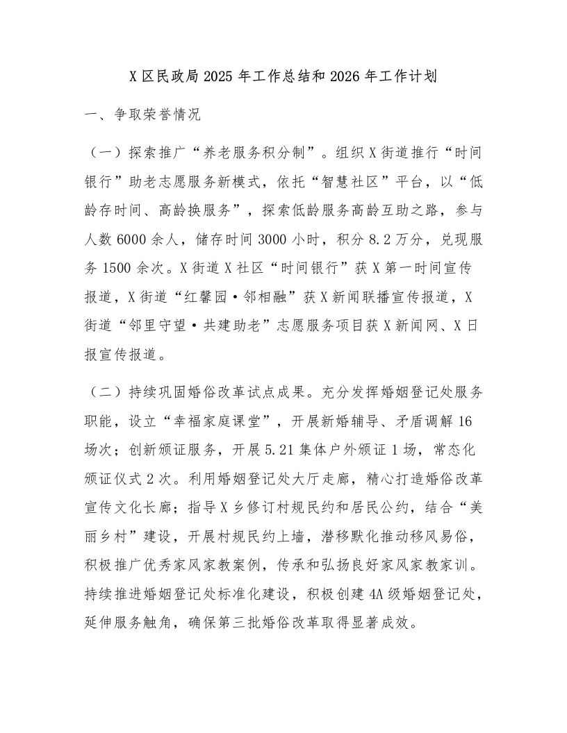 首页报告总结计划方案X区民政局2025年工作总结和2026年工作计划