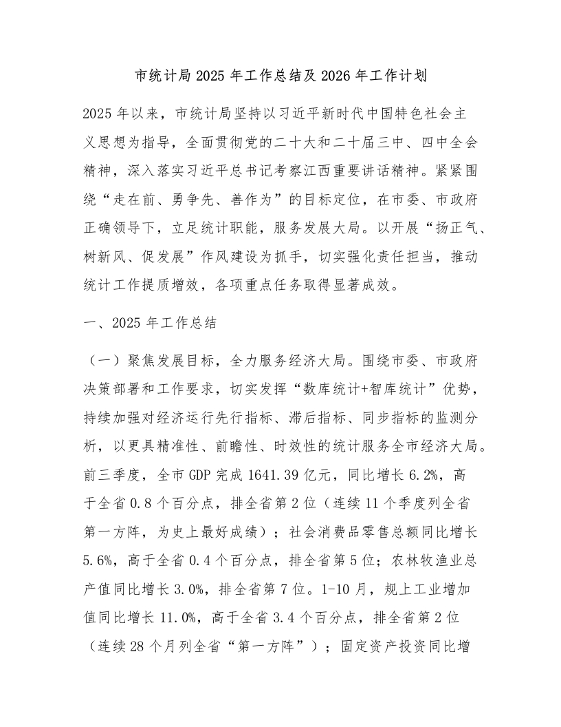 首页报告总结计划方案市统计局2025年工作总结及2026年工作计划