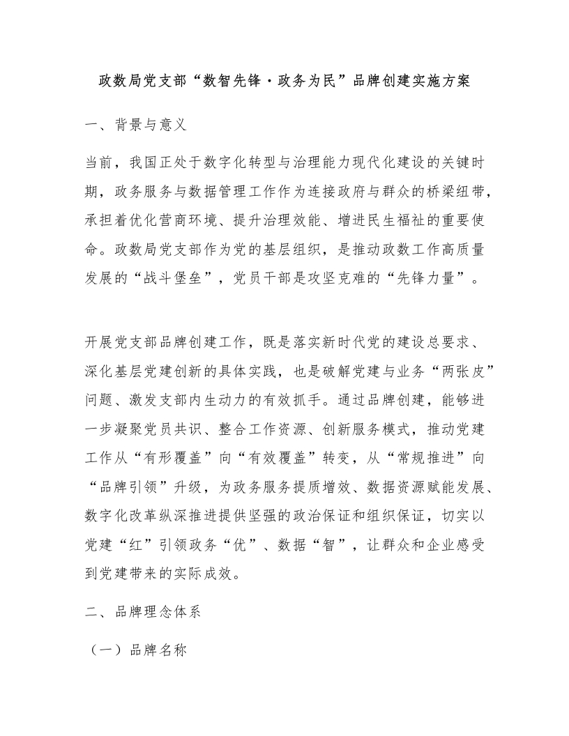 政数局党支部“数智先锋・政务为民”品牌创建实施方案