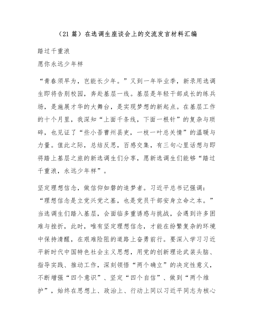 (21篇)在选调生座谈会上的交流发言材料汇编