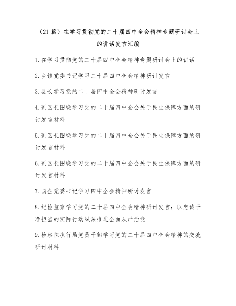首页领导发言领导讲话(21篇)在学习贯彻党的二十届四中全会精神专题研讨会上的讲话发言汇编