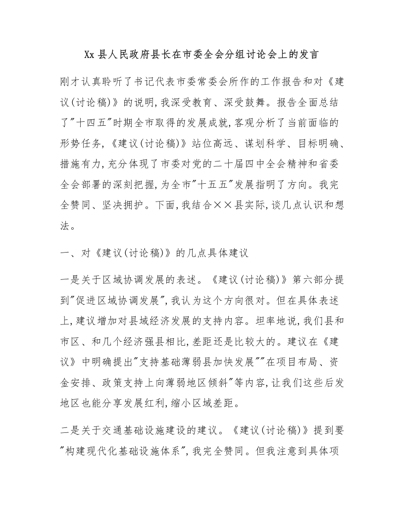 Xx县人民政府县长在市委全会分组讨论会上的发言