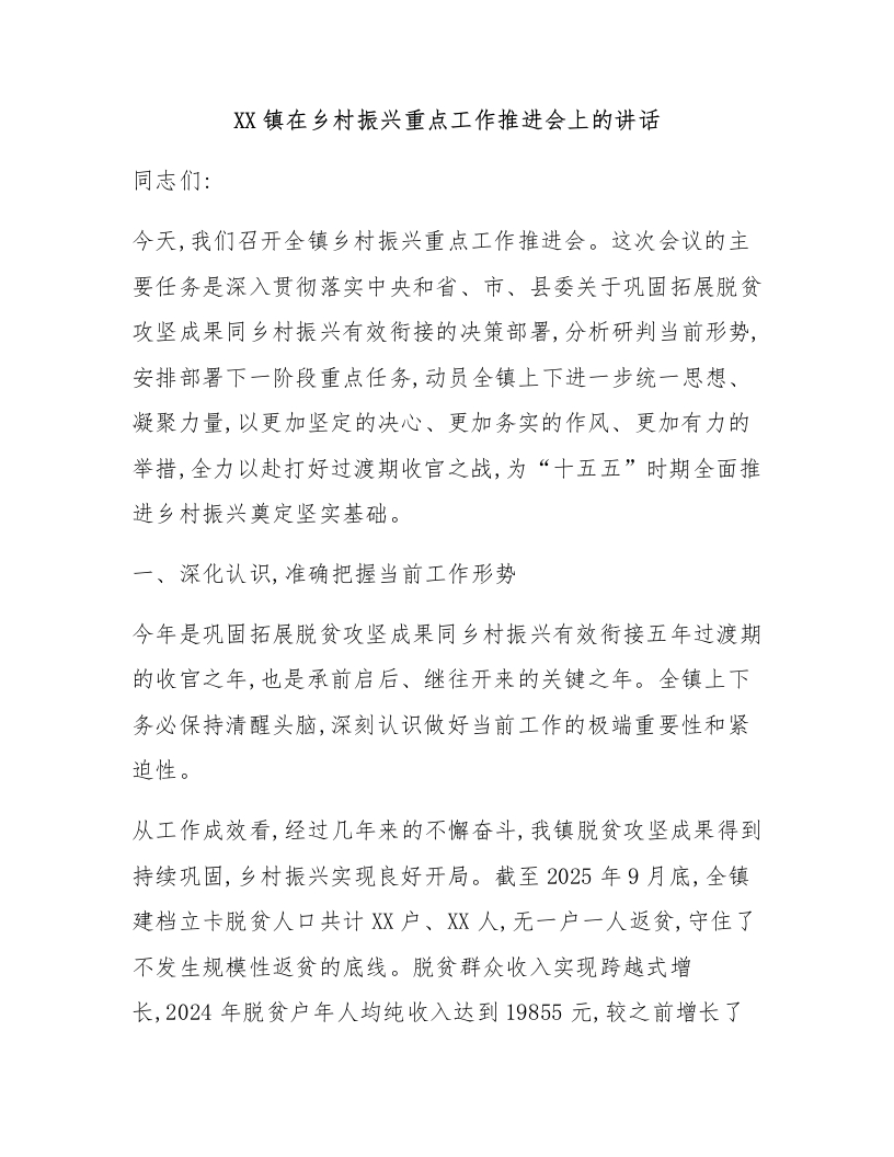 首页领导发言领导讲话XX镇在乡村振兴重点工作推进会上的讲话