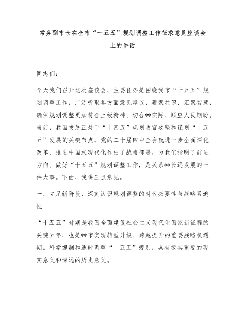 常务副市长在全市“十五五”规划调整工作征求意见座谈会上的讲话