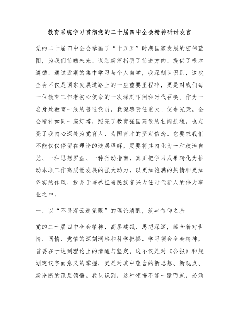 教育系统学习贯彻党的二十届四中全会精神研讨发言