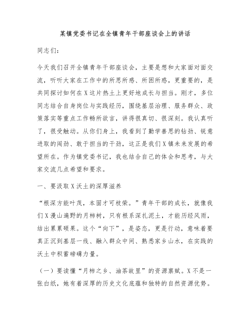某镇党委书记在全镇青年干部座谈会上的讲话