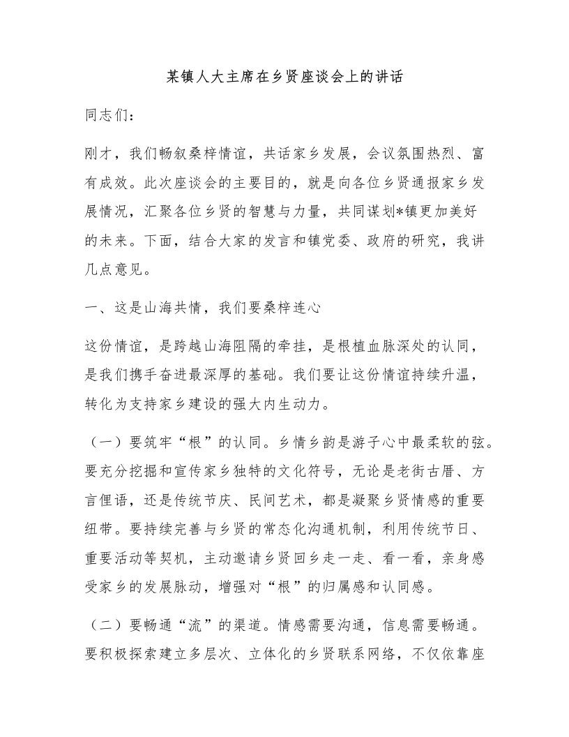 首页领导发言领导讲话某镇人大主席在乡贤座谈会上的讲话