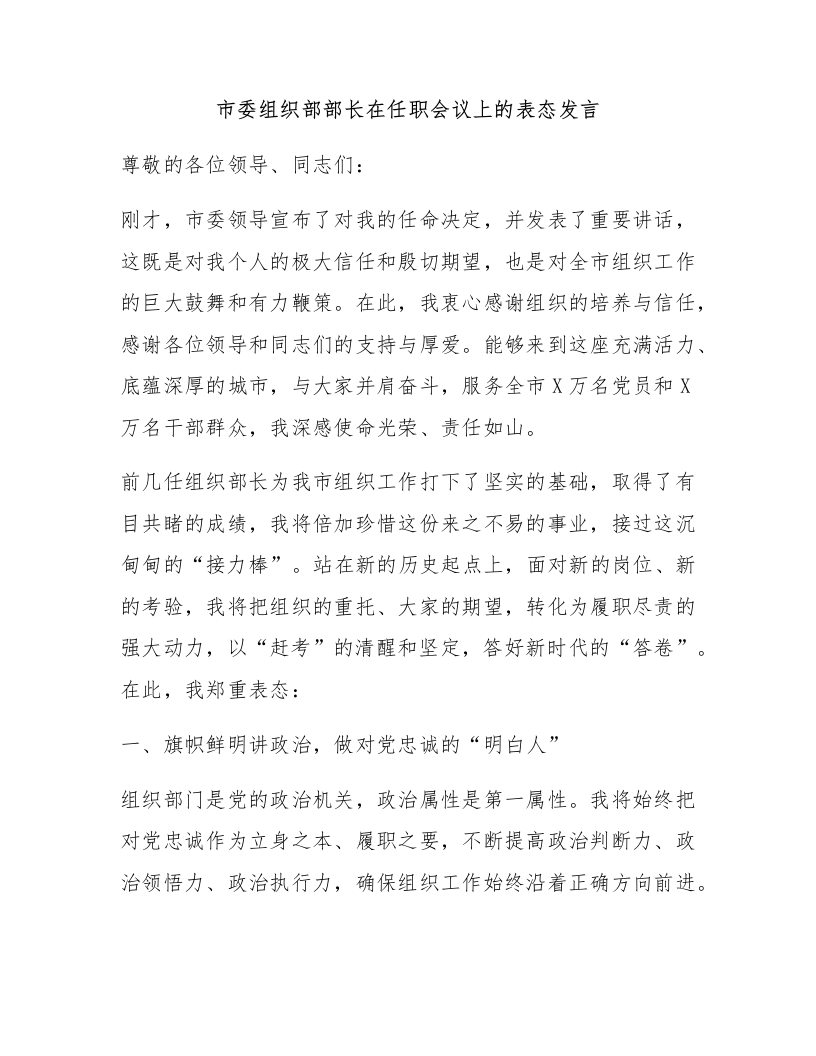 首页领导发言领导讲话市委组织部部长在任职会议上的表态发言