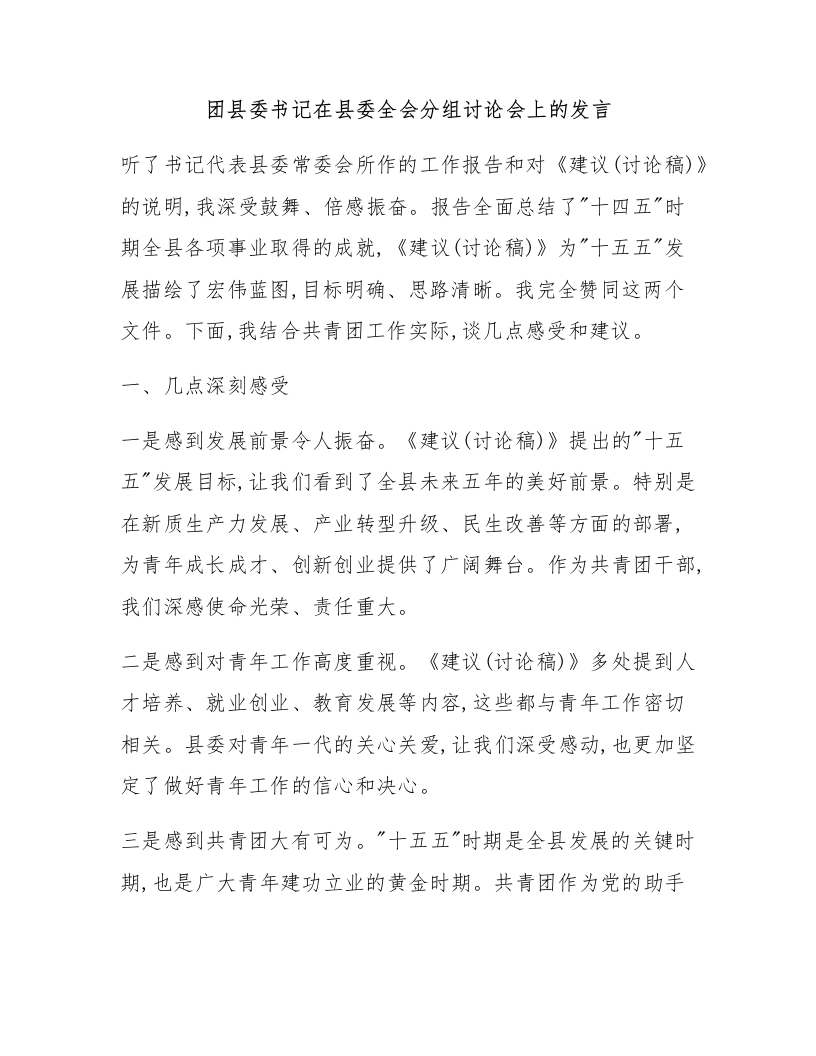 首页领导发言领导讲话团县委书记在县委全会分组讨论会上的发言