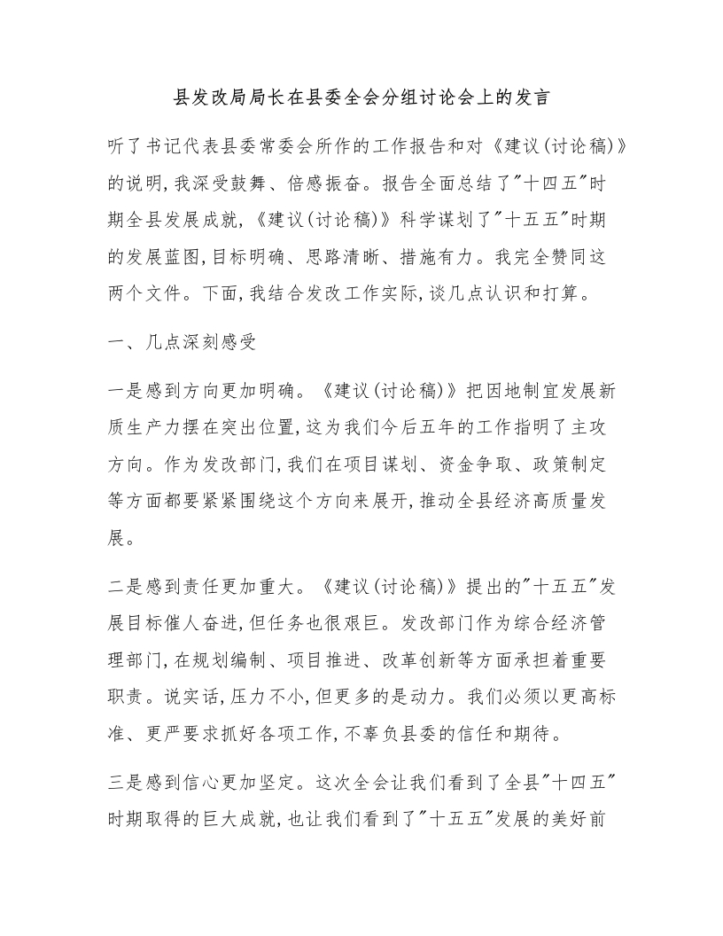 首页领导发言领导讲话县发改局局长在县委全会分组讨论会上的发言