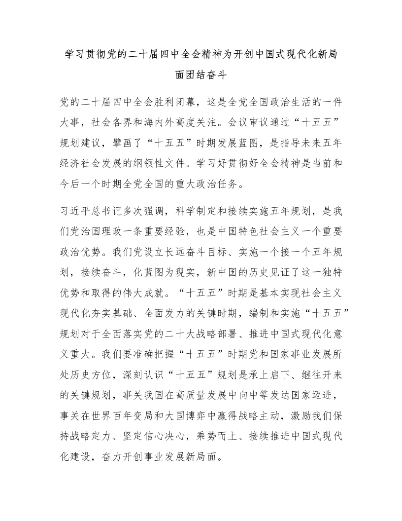 学习贯彻党的二十届四中全会精神为开创中国式现代化新局面团结奋斗