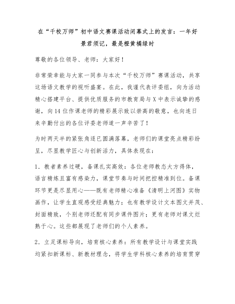 在“千校万师”初中语文赛课活动闭幕式上的发言:一年好景君须记,最是橙黄橘绿时