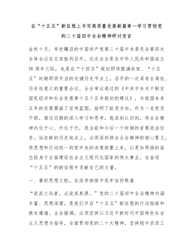 在“十五五”新征程上书写高质量发展新篇章—学习贯彻党的二十届四中全会精神研讨发言