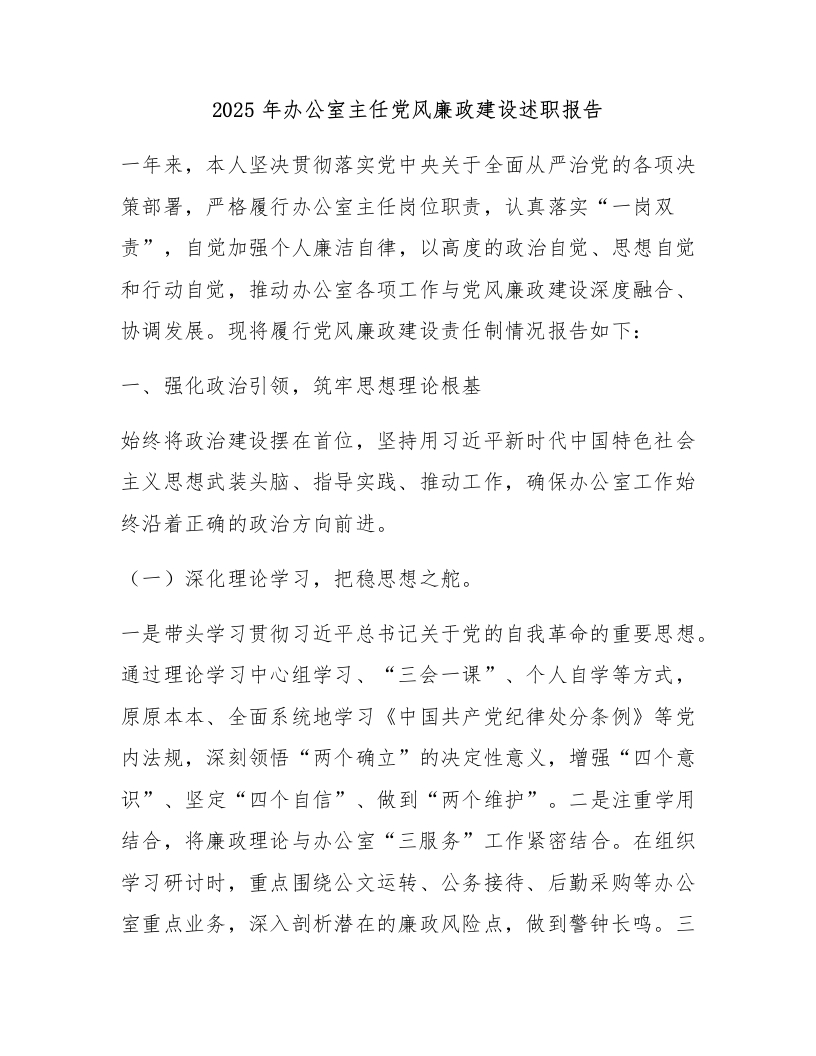 首页报告总结述职述廉2025年办公室主任党风廉政建设述职报告