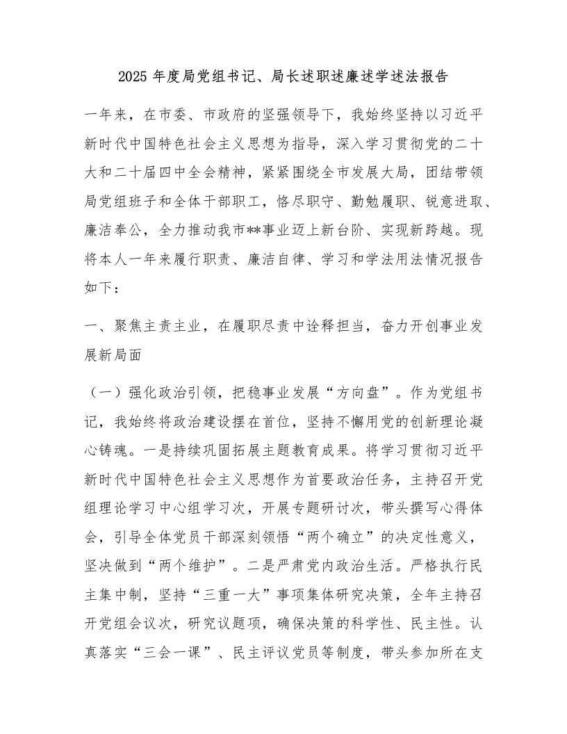 首页报告总结述职述廉2025年度局党组书记、局长述职述廉述学述法报告