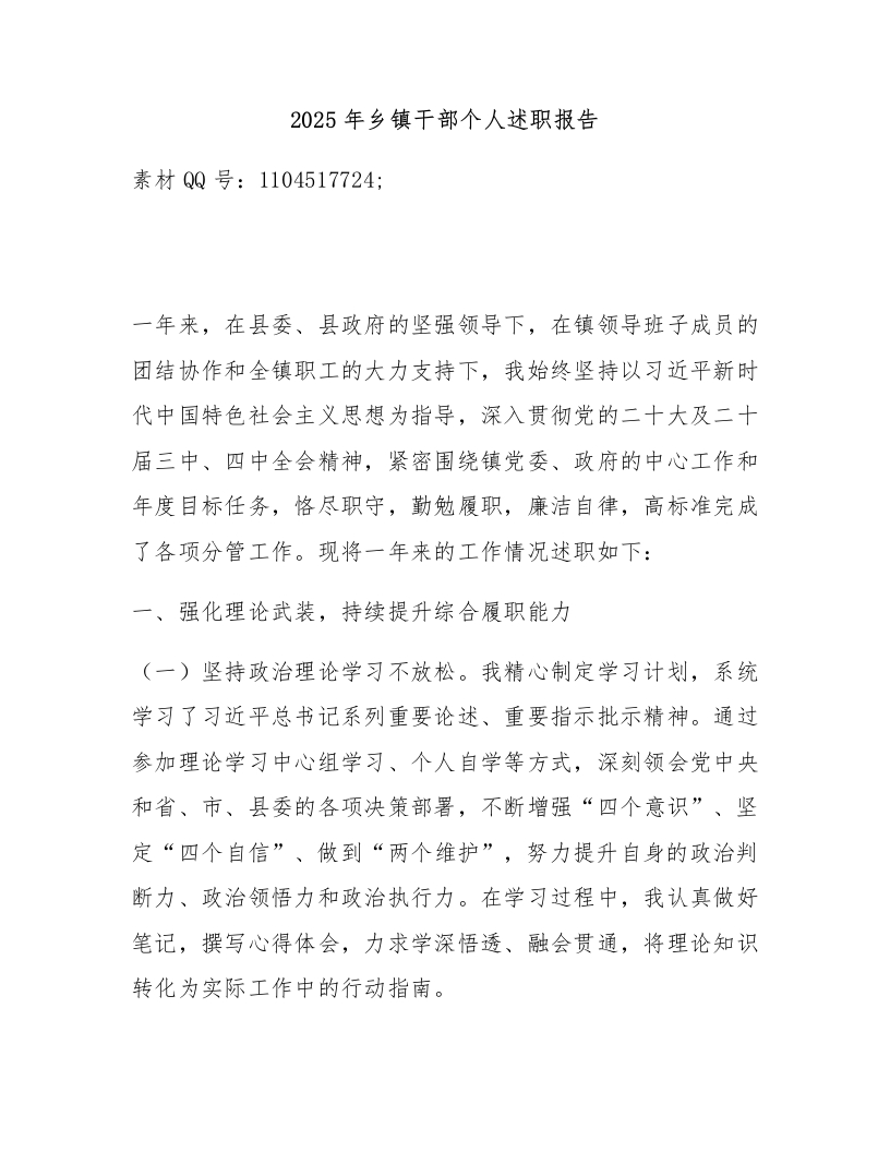 首页报告总结述职述廉2025年乡镇干部个人述职报告