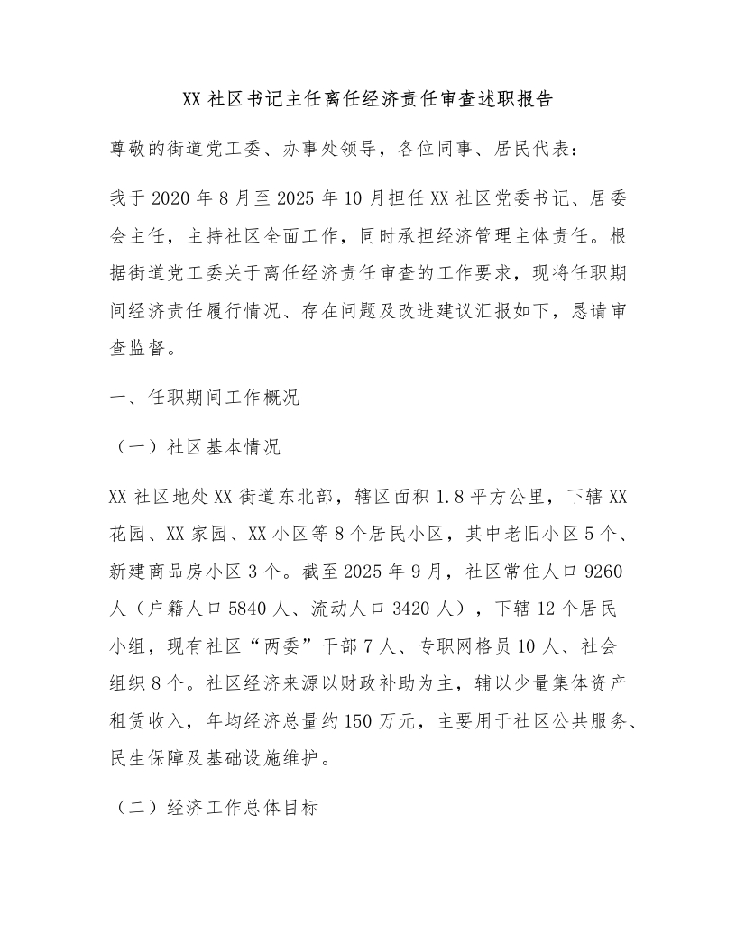 首页报告总结述职述廉XX社区书记主任离任经济责任审查述职报告