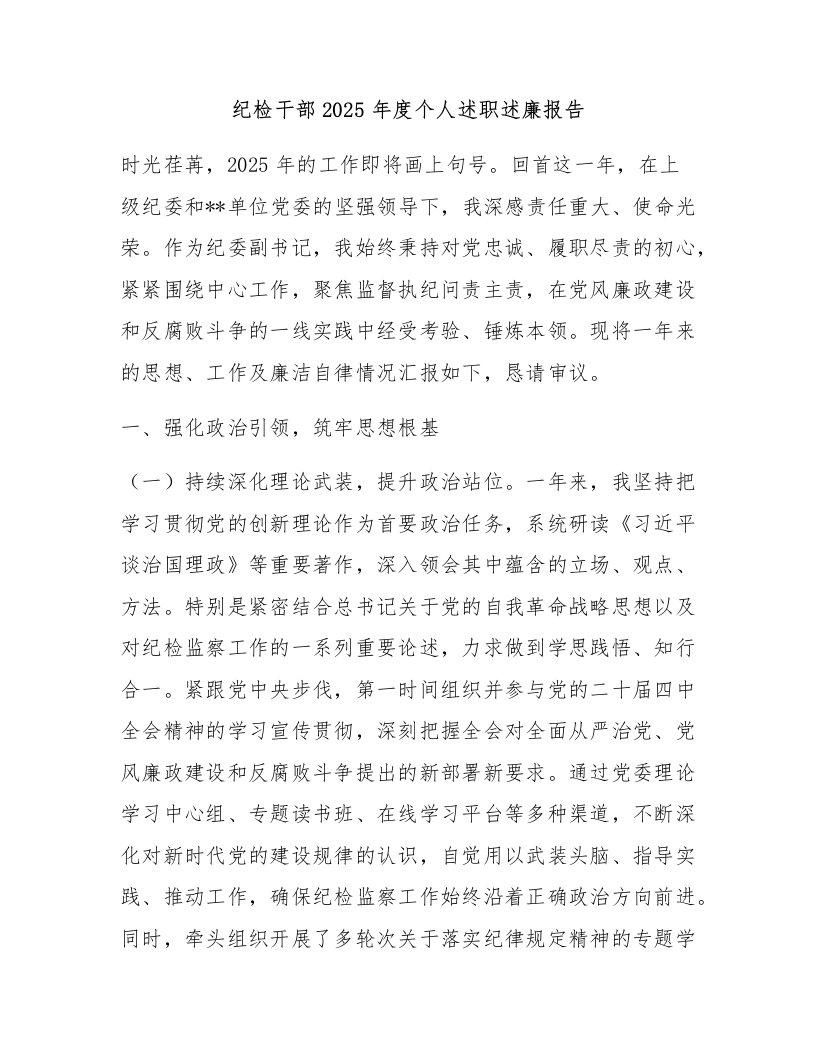 纪检干部2025年度个人述职述廉报告