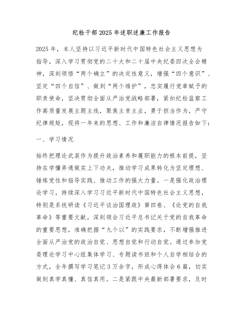 首页报告总结述职述廉纪检干部2025年述职述廉工作报告