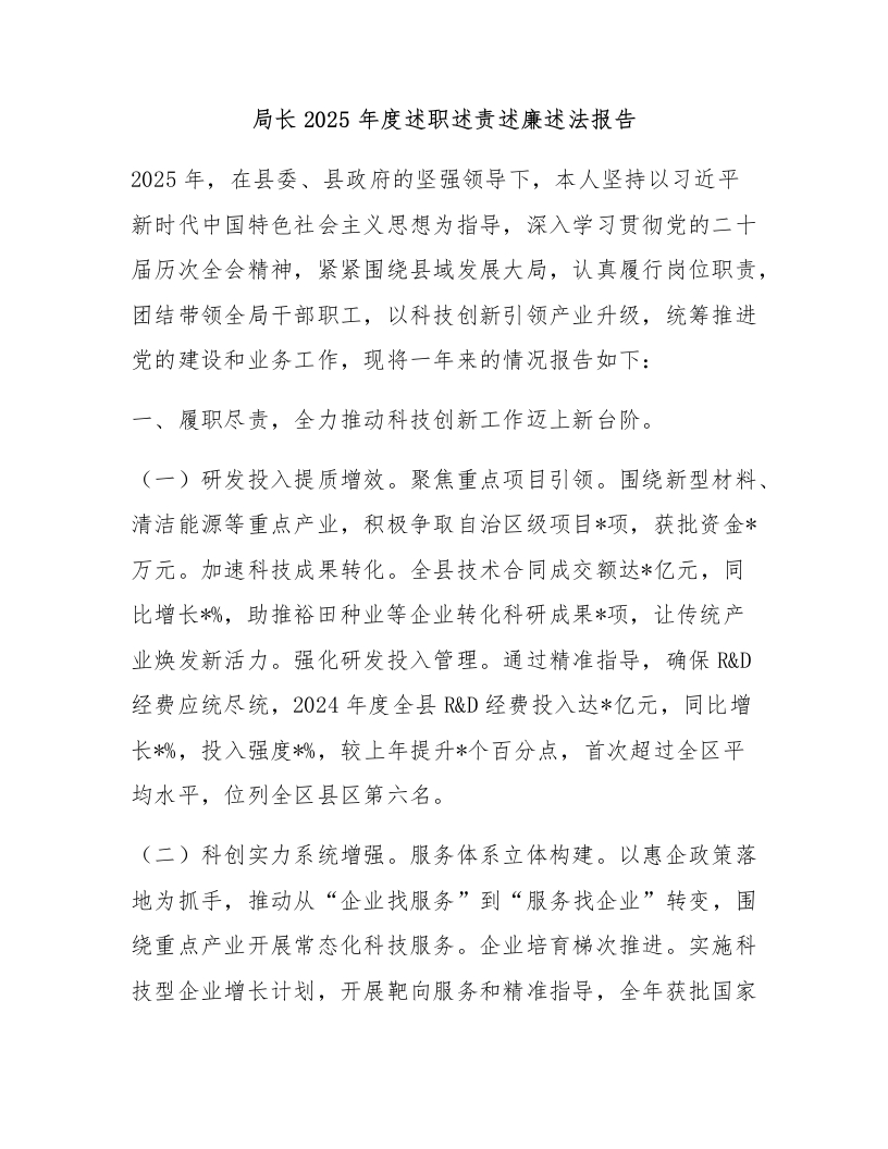 局长2025年度述职述责述廉述法报告