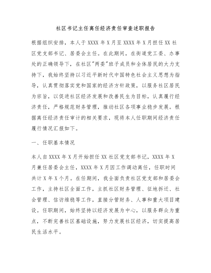 首页报告总结述职述廉社区书记主任离任经济责任审查述职报告