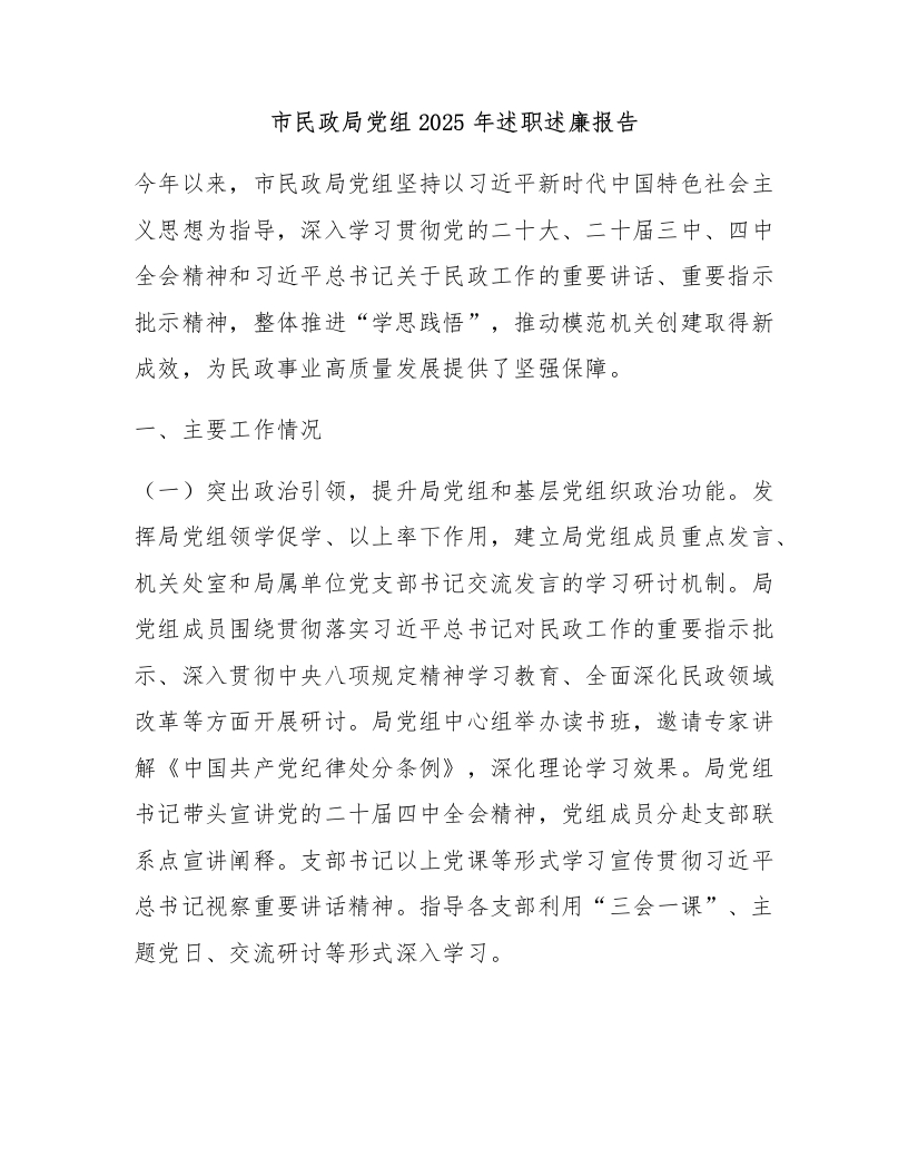 首页报告总结述职述廉市民政局党组2025年述职述廉报告