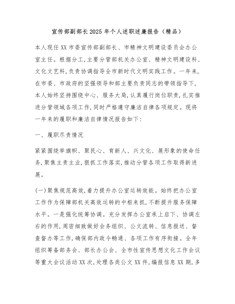 首页报告总结述职述廉宣传部副部长2025年个人述职述廉报告(精品)
