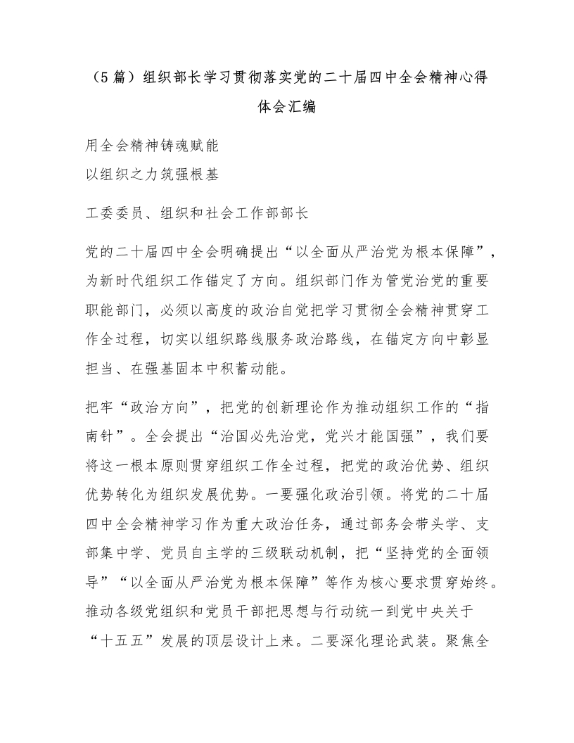 (5篇)组织部长学习贯彻落实党的二十届四中全会精神心得体会汇编