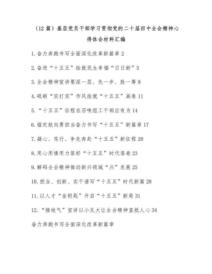 (12篇)基层党员干部学习贯彻党的二十届四中全会精神心得体会材料汇编