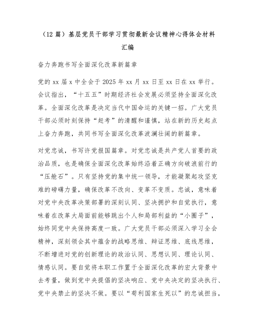(12篇)基层党员干部学习贯彻最新会议精神心得体会材料汇编