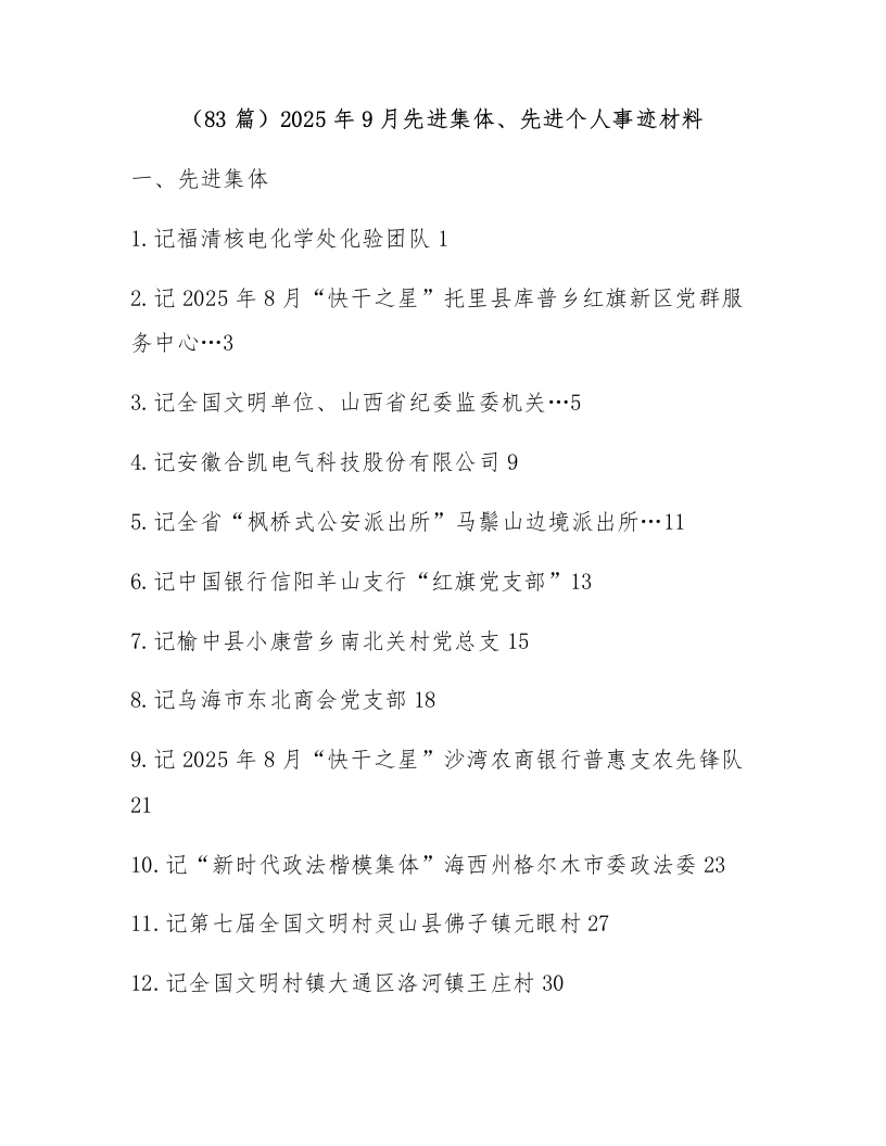 (83篇)2025年9月先进集体、先进个人事迹材料