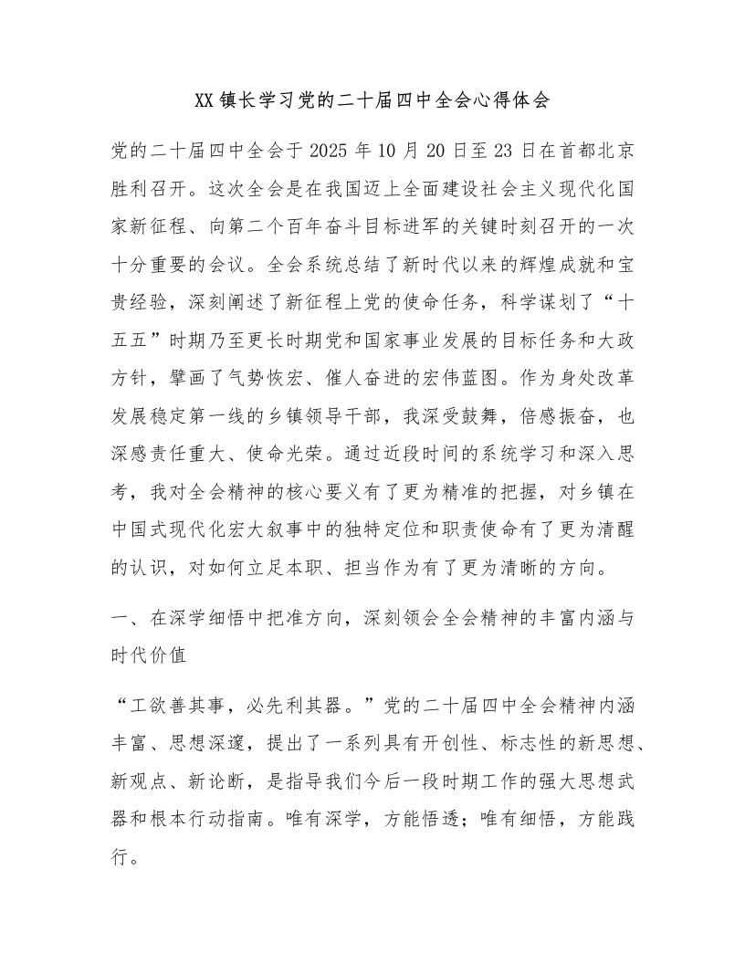 首页感悟体会心得体会XX镇长学习党的二十届四中全会心得体会
