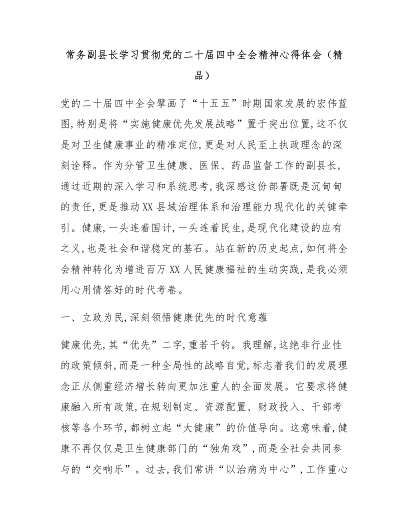 常务副县长学习贯彻党的二十届四中全会精神心得体会(精品)