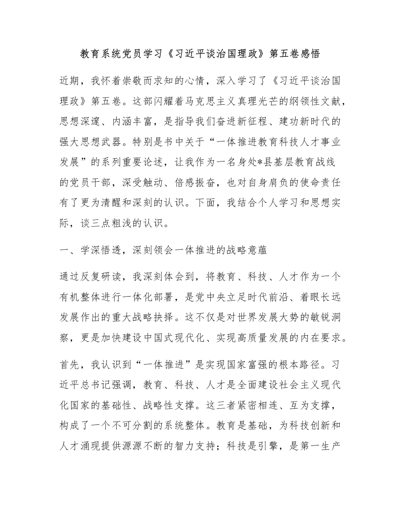 教育系统党员学习《习近平谈治国理政》第五卷感悟