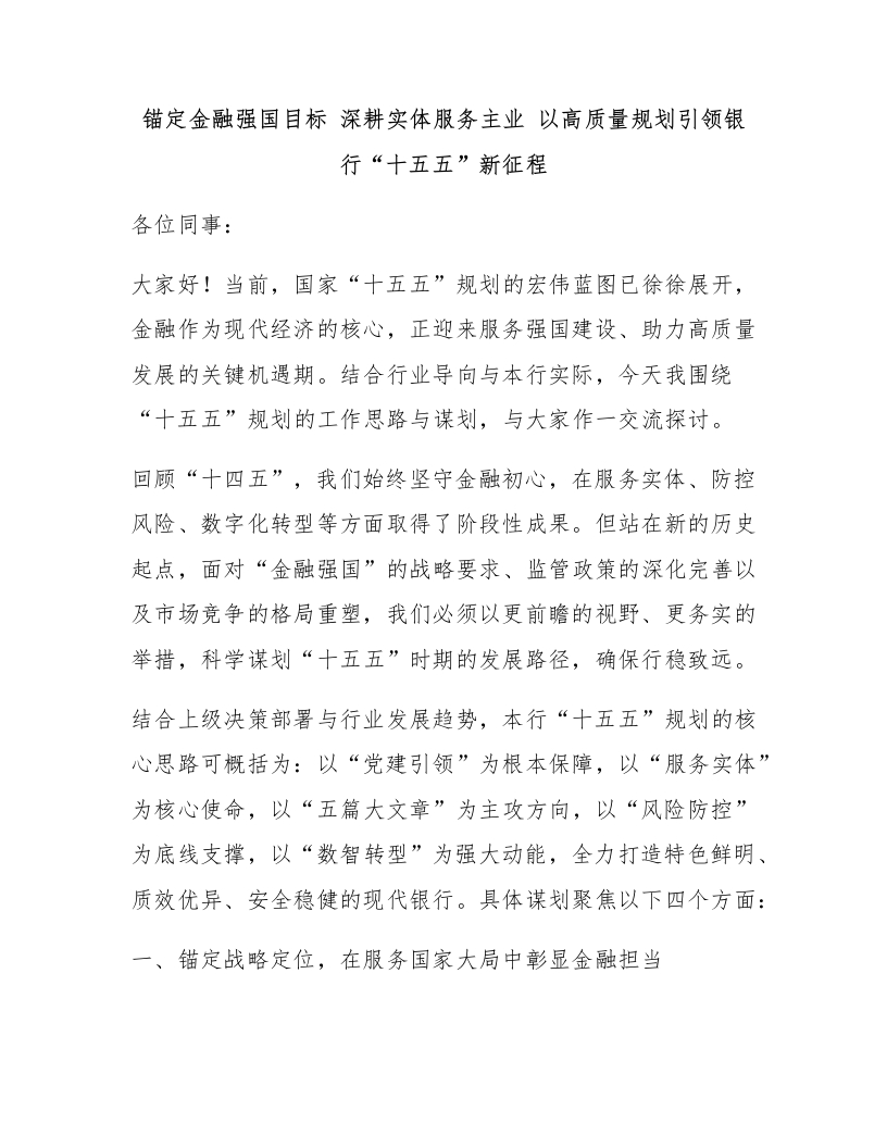 锚定金融强国目标 深耕实体服务主业 以高质量规划引领银行“十五五”新征程