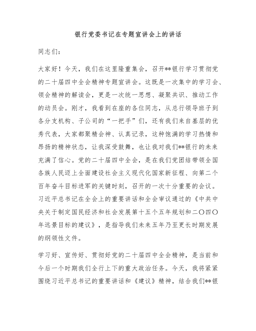 首页国企银行专区银行材料银行党委书记在专题宣讲会上的讲话