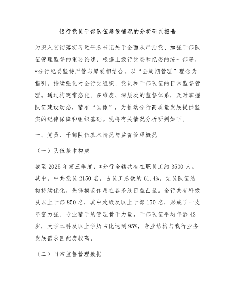 首页国企银行专区银行材料银行党员干部队伍建设情况的分析研判报告